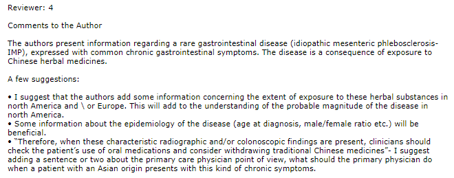 査読から返信までの時間は非常に短いです。Clinical Pictureの場合では最短で1日、最長でも14日で返事がきます。Acceptされる場合は7日以内がほとんどです(逆に7日を超えてしまうと経験的にほぼRejectという印象)。また査読料は無料です。コメントが付いていることはほとんどありません。