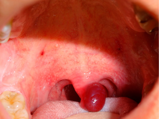 Uvula hematoma(口蓋垂血種)は血小板減少性紫斑病などの患者や気管挿管に関連した外傷によって生じることがある珍しい疾患で、過去には血種によって気道がふさがれ窒息したという症例報告がちらほら見られます。文献自体も非常に少なく、和文では60年前のものが数例引っかかる程度でした。